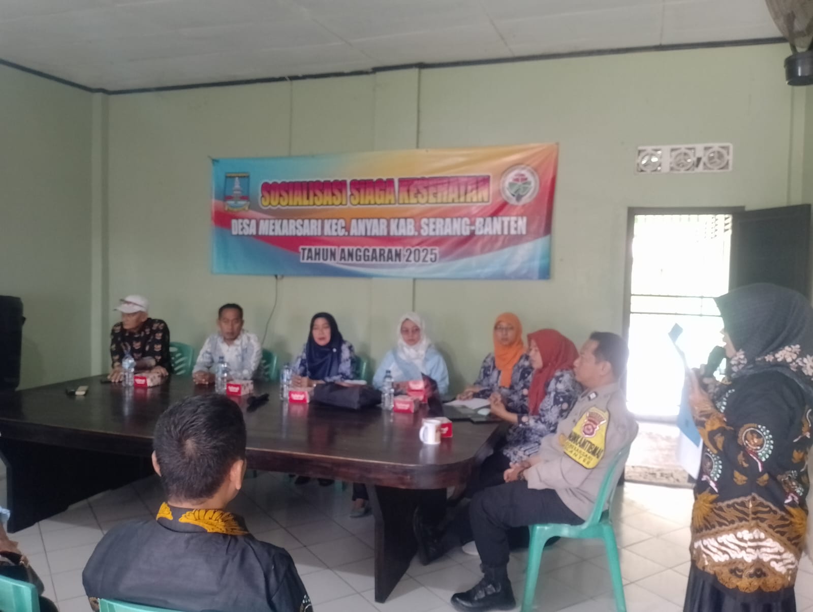 Desa Mekarsari melaksanakan kegiatan Sosialisasi Desa Siaga Kesehatan Hadir dalam kegiatan tersebut Kades, Kepala Puskesmas Anyar, Bhabinkamtibmas dan beserta Ibu PKK Desa dan tamu undangan, serta narasumber penyuluhan kesehatan dari kepala Puskesmas UPT Anyar.