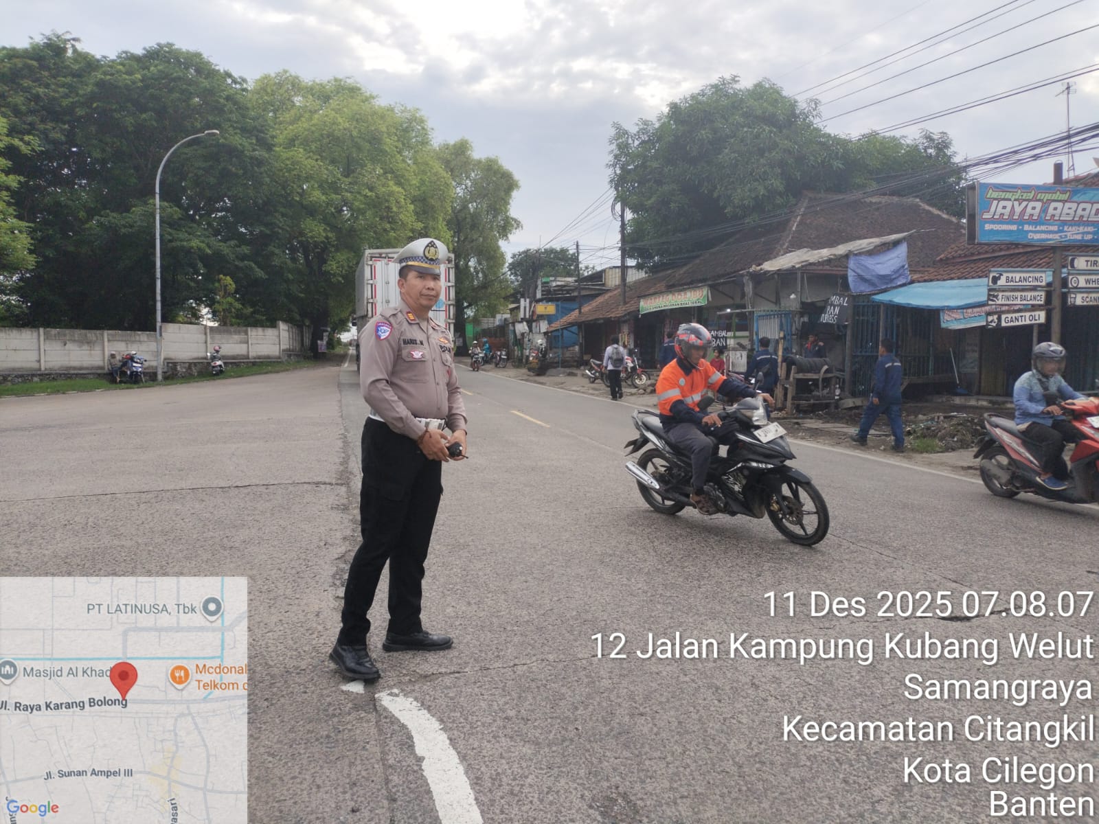 Cilegon - Tingginya mobilitas masyarakat pada jam-jam sibuk, tingkat kerawanan baik itu kemacetan ataupun kecelakaan pasti ada potensi, sehingga untuk mengantisipasi hal tersebut Personil Polsek Ciwandan Polres Cilegon Polda Banten Bhabinkamtibmas melaksanakan Strong Point pada sejumlah lokasi, Kamis (11/12/2025).