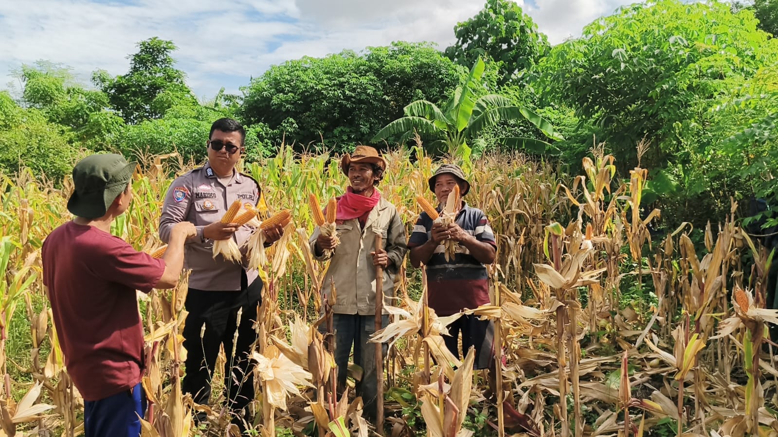 Cilegon - Polsek Ciwandan Polres Cilegon Polda Banten mendukung kegiatan panen jagung Hibrida hasil penanaman Kelompok Tani Kosambi di Kelurahan Samangraya Kecamatan Citqngkil, Kota Cilegon, Sabtu (13/12/2025).