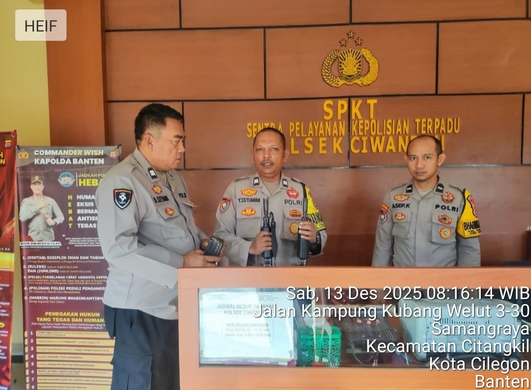 Cilegon - Sebelum melaksanakan tugas jaga Mako Personil Polsek Ciwandan Polres Cilegon Polda Banten Melaksanakan Serah Terima Tugas jaga dan Mengecek Kelengkapan barang-barang Inventaris, Sabtu (13/12/2025).