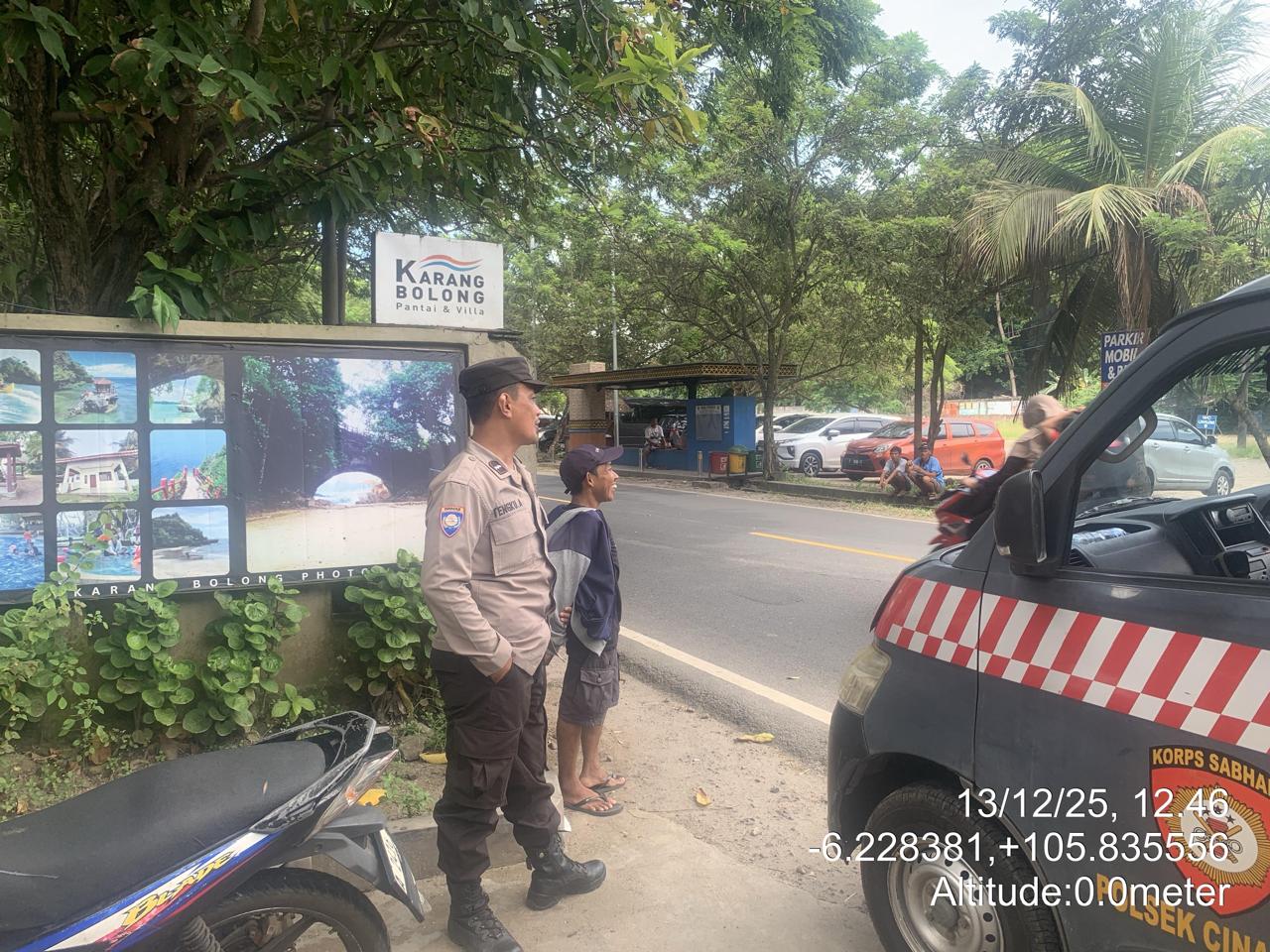 _*POLRES CILEGON*_ | Polsek Cinangka Polres Cilegon Polda Banten melaksanakan kegiatan patroli Serta memberikan Himbauan kepada pengunjung pantai yang berwisata dan Sambang kepada petugas penjaga pantai dan juga antisipasi harkamtibmas di Wilayah Hukum Polsek Cinangka Polres Cilegon Polda Banten, Minggu (14/12/2025).