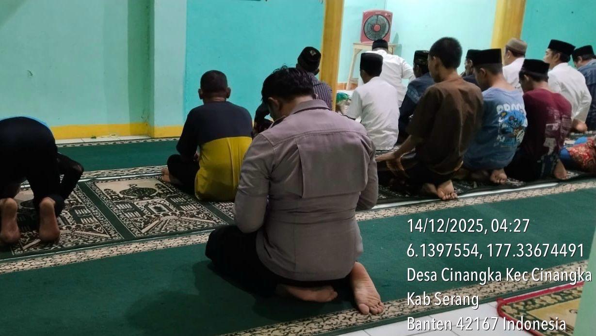 *POLRES CILEGON* Bhabinkamtibmas Polsek Cinangka Polres Cilegon Polda Banten laksanakan Subuh keliling di Desa Pasauran Kec. Cinangka, Minggu (14/12/2025)