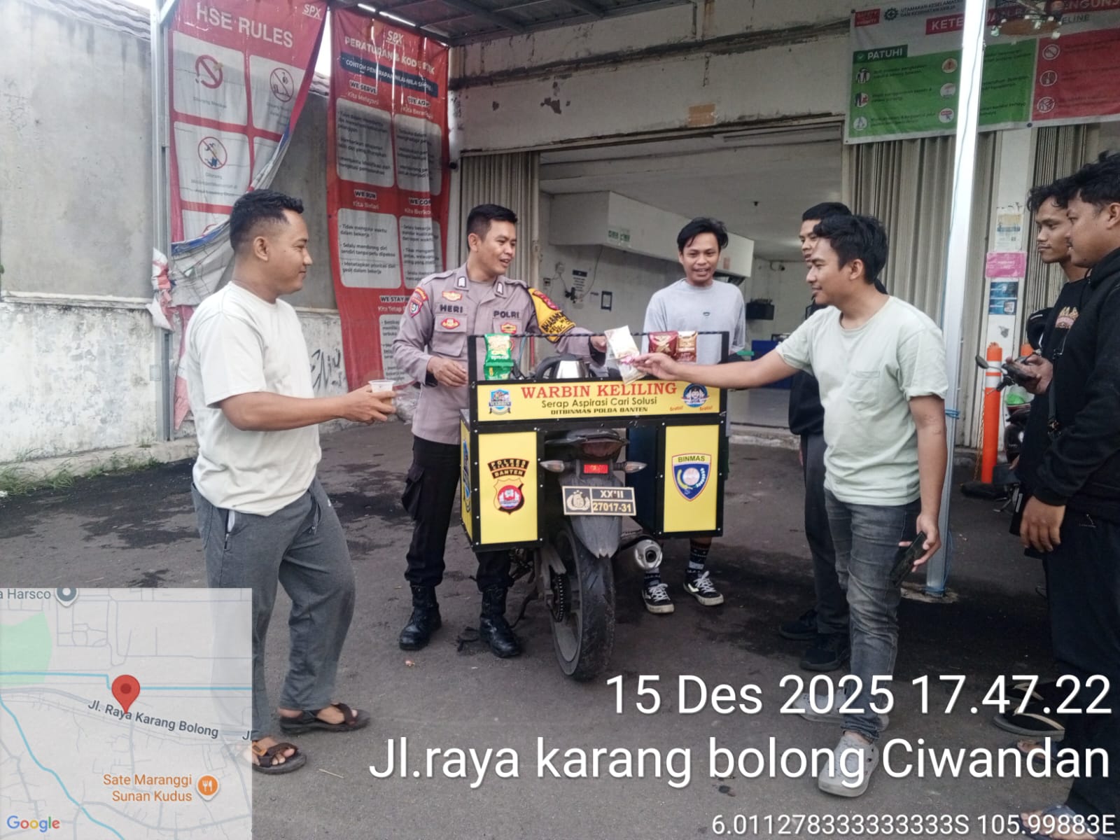 Cilegon - Bhabinkamtibmas Polsek Ciwandan Polres Cilegon Polda Banten melaksanakan kegiatan WARBIN (warung Blnhabinkamtibmas) di Lingkungan Binaan, Senin (15/12/2025).