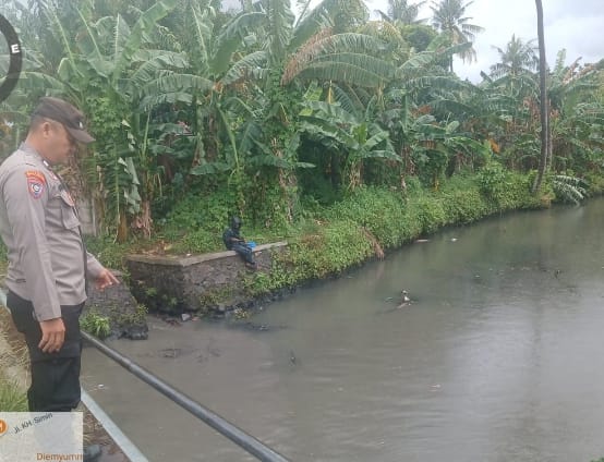 Personil Polsek Purwakarta melakukan pemantauan intensif terhadap aliran sungai di seluruh wilayah Kecamatan Purwakarta, Kota Cilegon, pasca terjadinya hujan lebat