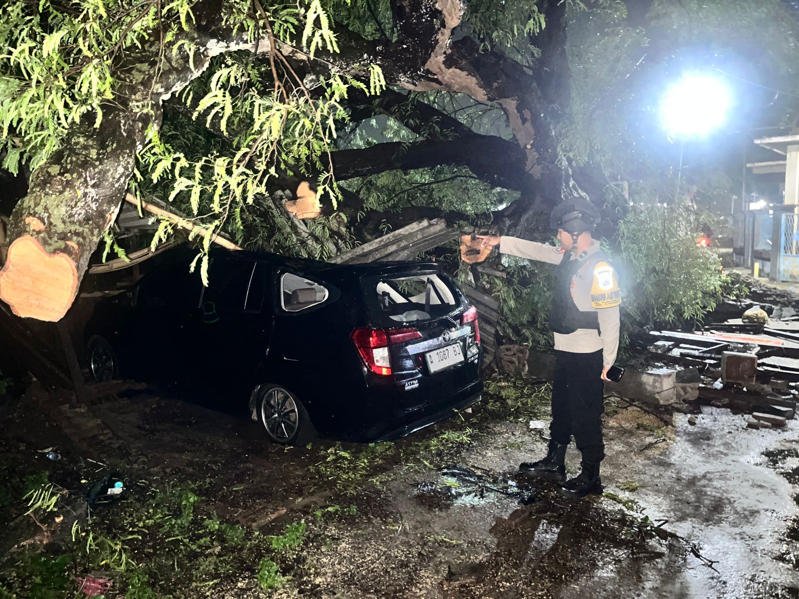 Hujan Angin,Akibatkan Pohon Tumbang Timpah Mobil