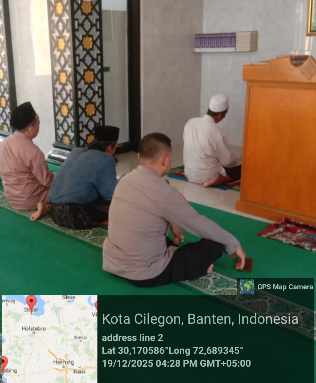 Cilegon - Dalam Rangka Memakmurkan Masjid Dan Sambang,Bhabinkamtibmas Polsek Ciwandan Polres Cilegon Polda Banten Sholat Berjama’ah dan Bersilaturahmi kepada para tokoh Agama sebagai upaya meningkatkan Ukhuwah Islamiyah dalam menjalin silaturahmi dan membangun komunikasi yang baik, Kamis (18/12/2025).