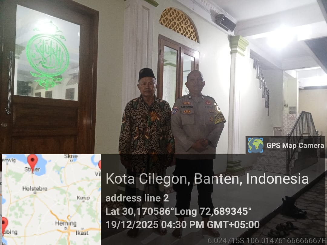 Cilegon - Dalam Rangka Memakmurkan Masjid Dan Sambang,Bhabinkamtibmas Polsek Ciwandan Polres Cilegon Polda Banten Sholat Berjama’ah dan Bersilaturahmi kepada para tokoh Agama sebagai upaya meningkatkan Ukhuwah Islamiyah dalam menjalin silaturahmi dan membangun komunikasi yang baik, Kamis (18/12/2025).