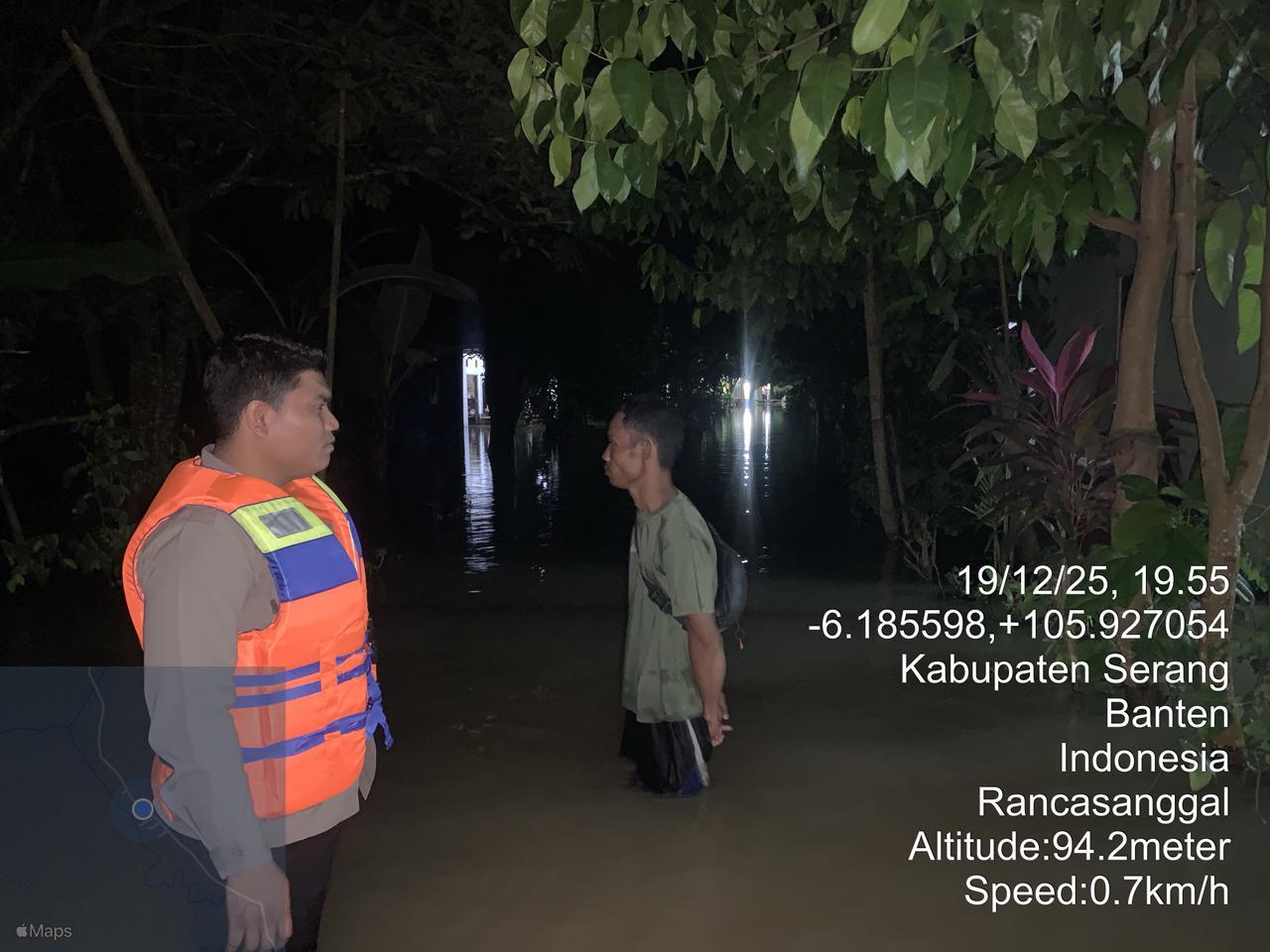 *-POLRES CILEGON-* Polda Banten, Pastikan situasi di Lingkungan Paskah Aman Hujan Deras Bhabinkamtibmas Aipda Tengku Bersama Bpbd Meninjau Warga Yang terdampak banjir akibat hujan deras di Kp Kajeroan Desa. Rancasanggal Kecamatan Cinangka Kab. Serang. Sabtu (20/12/2025).