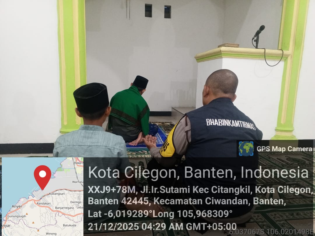 Cilegon - Dalam Rangka Implementasi Program Kapolda Banten Yaitu Sholat Jum’at Keliling Dan Berjama’ah Serta Memakmurkan Masjid Bhabinkamtibmas Polsek Ciwandan Polres Cilegon Polda Banten Sholat Berjama’ah dan Bersilaturahmi Bersama masyarakat sebagai upaya meningkatkan Ukhuwah Islamiyah dalam menjalin silaturahmi dan membangun komunikasi yang baik, Minggu (21/12/2025).