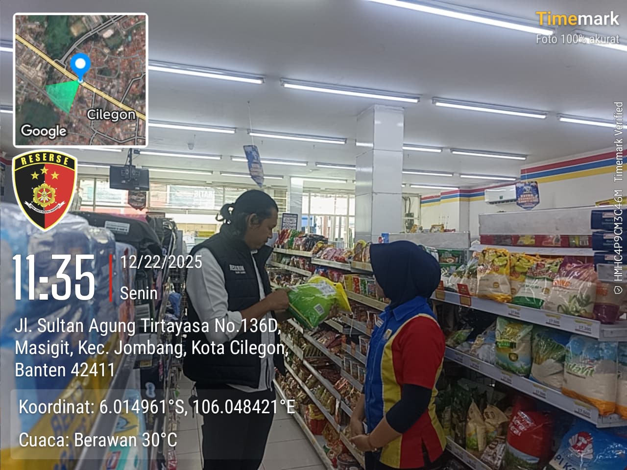 Cilegon – Unit II Satreskrim Polres Cilegon Polda Banten melakukan pengecekan terhadap persediaan dan harga bahan pangan di Pasar Kelapa, Cilegon, senin tanggal 22 Desember 2025.