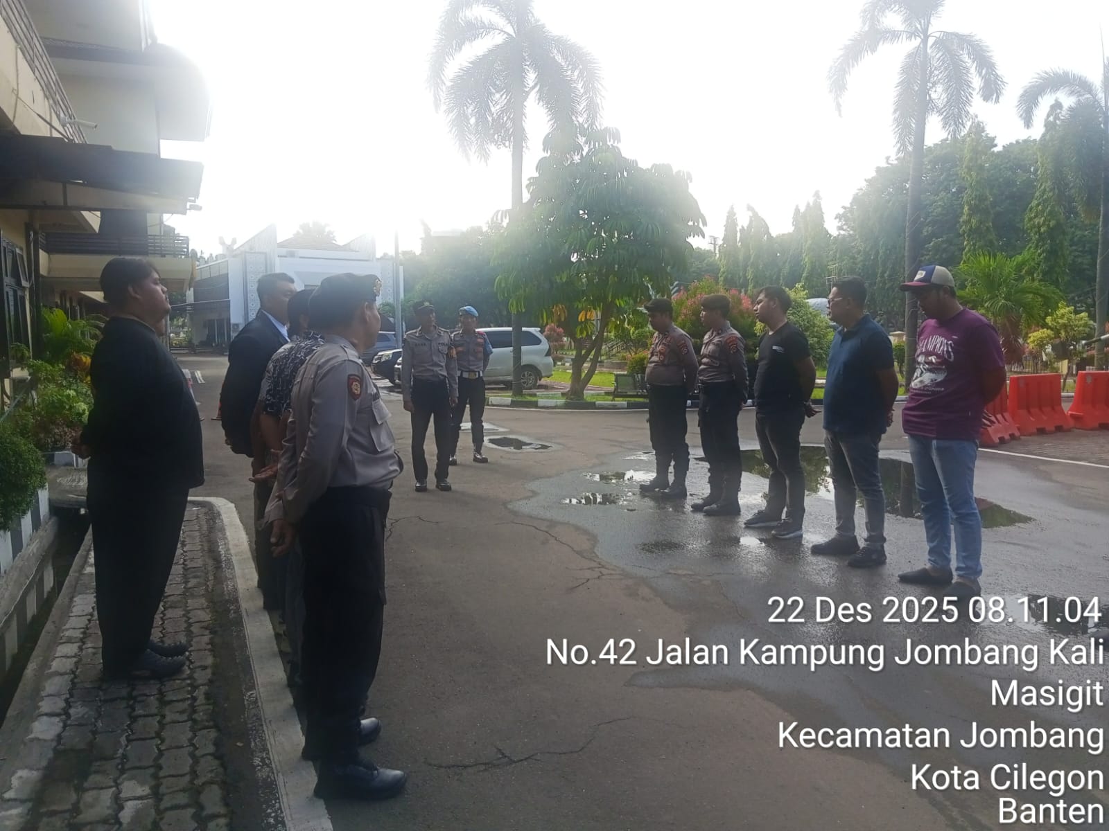 Cilegon, personel Satreskrim Polres Cilegon Polda Banten melaksanakan piket di penjagaan pintu masuk Polres Cilegon Polda Banten untuk memastikan mako Polres Cilegon dalam keadaan aman dan nyaman dalam melayani Masyarakat. Senin (22 /12/2025).