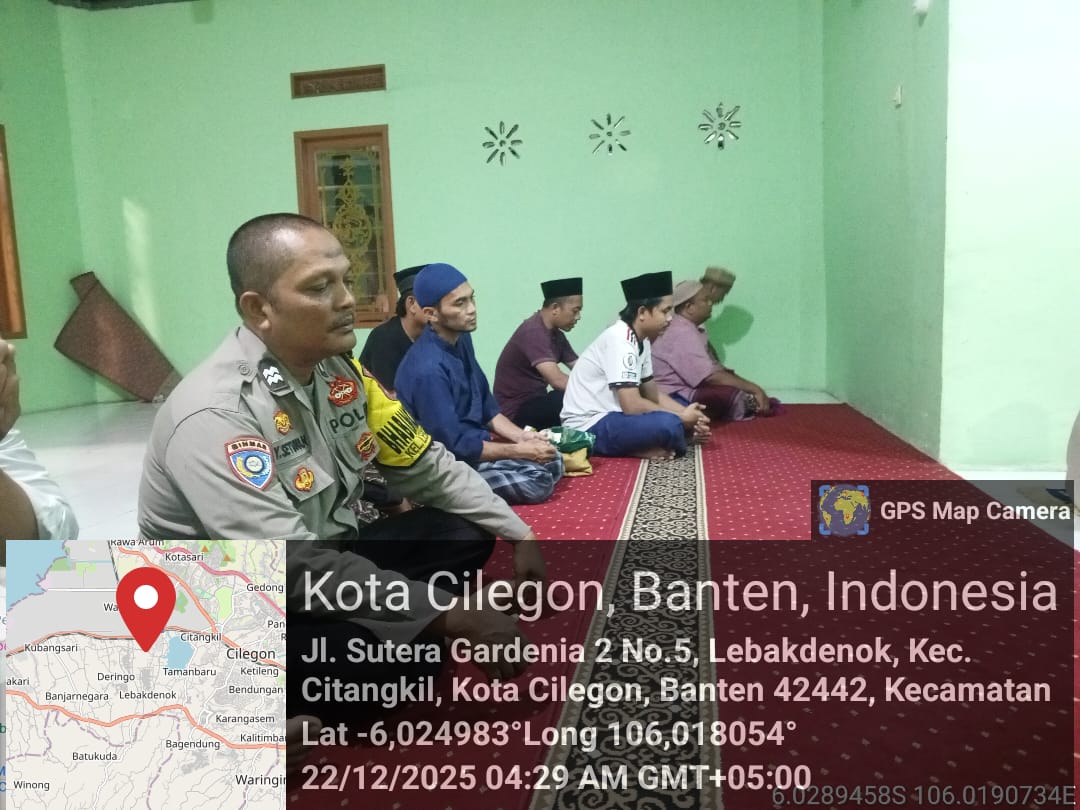 Cilegon – Bhabinkamtibmas Polsek Ciwandan Polres Cilegon Polda Banten menggelar kegiatan Pembinaan Rohani dengan Sholat subuh keliling di Masjid Yang ada Di Daerah hukum Polsek Ciwandan Polres Cilegon Polda Banten, Selasa (23/12/2025).