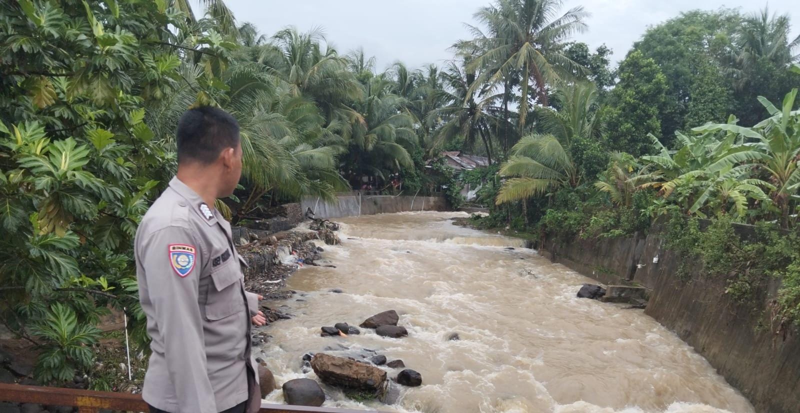 Lakukan Patroli Personel Polsek Anyar Pantau Debit Air Sungai Wilayah Pasca Hujan