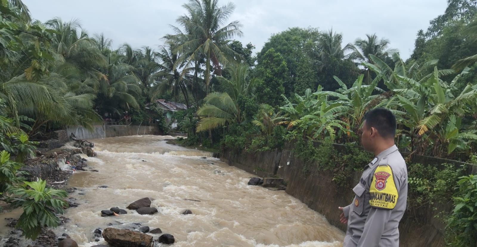 Lakukan Patroli Personil Polsek Anyar Pantau Debit Air Sungai Wilayah Pasca Hujan