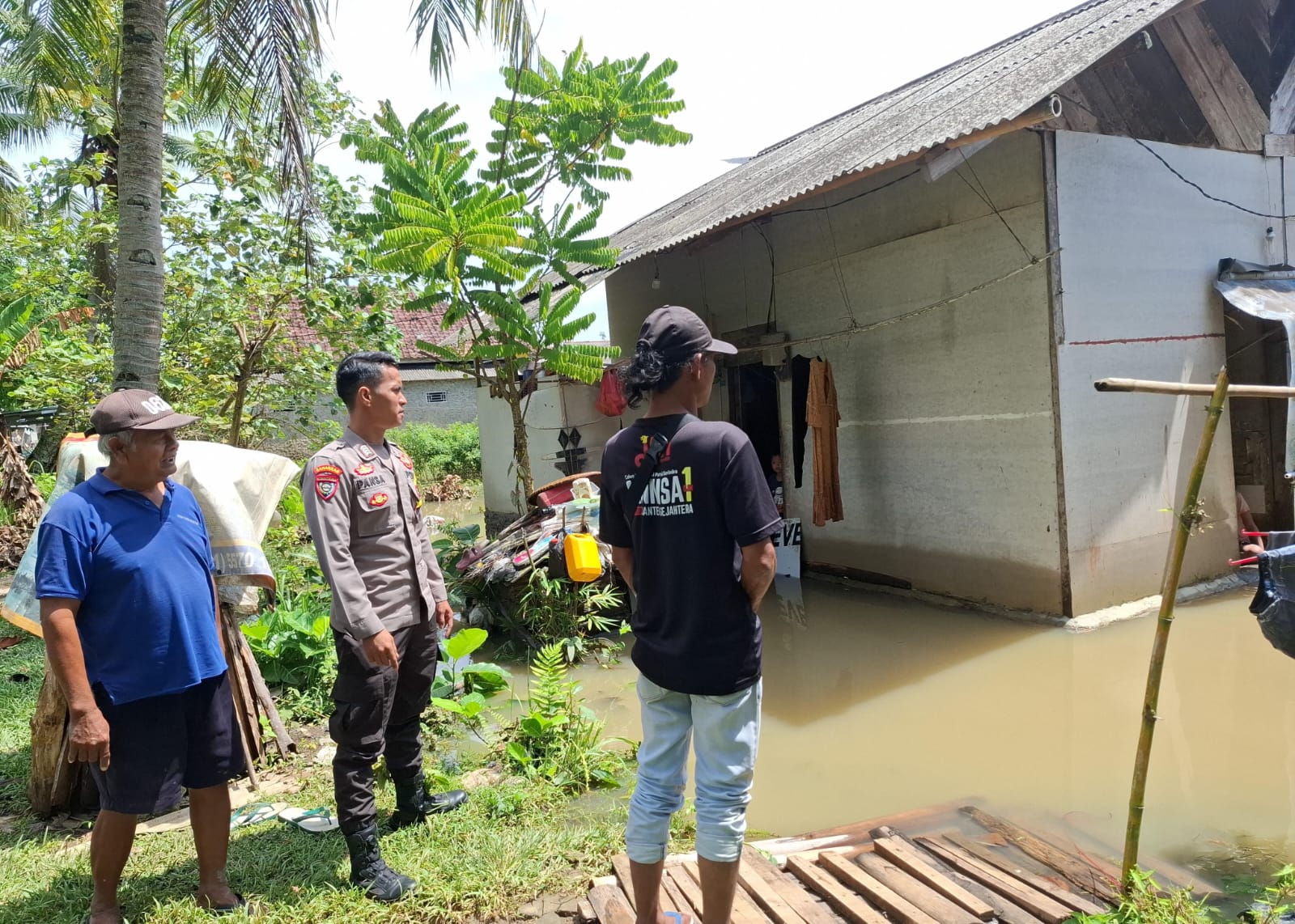 Bhabinkamtibmas Monitoring yang terdampak Banjir akibat Hujan Deras di Desa Tambang Ayam Kecamatan Anyar. Rabu. (24/12).