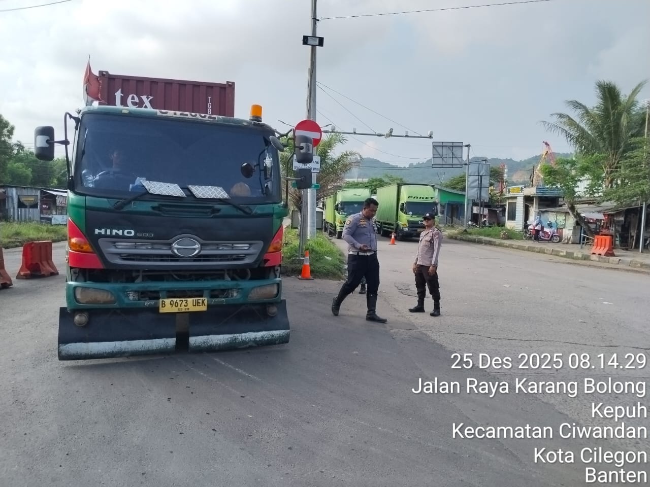Kapolres Cilegon Polda Banten AKBP Dr. Martua Raja Taripar Laut Silitonga yang di wakili Kapolsek Ciwandan Polres Cilegon Polda Banten Kompol Andi Suherman mengatakan, "Guna terciptanya kelancaran arus Libur Natal Dan tahun Baru 2025-2026, Pospam 5 Ciwandan merekayasa arus lalu lintas yang akan menuju Pelabuhan Pelindo Banten.