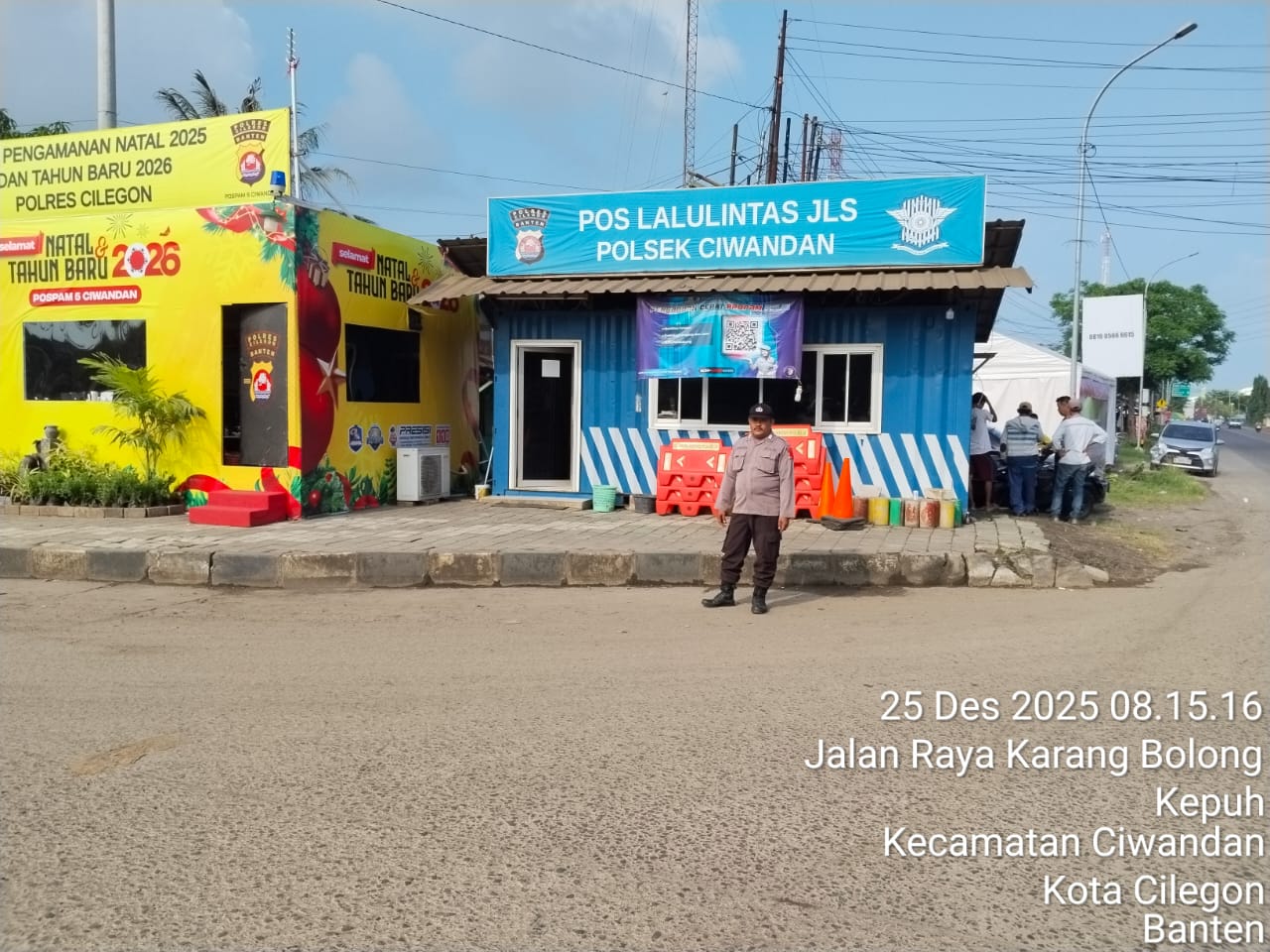 Kapolres Cilegon Polda Banten AKBP Dr. Martua Raja Taripar Laut Silitonga yang di wakili Kapolsek Ciwandan Polres Cilegon Polda Banten Kompol Andi Suherman mengatakan, "Guna terciptanya kelancaran arus Libur Natal Dan tahun Baru 2025-2026, Pospam 5 Ciwandan merekayasa arus lalu lintas yang akan menuju Pelabuhan Pelindo Banten.