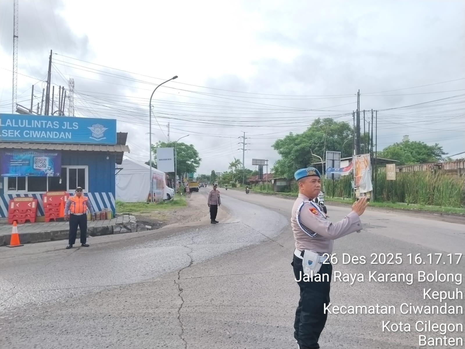 Kapolres Cilegon Polda Banten AKBP Dr. Martua Raja Taripar Laut Silitonga yang di wakili Kapolsek Ciwandan Polres Cilegon Polda Banten Kompol Andi Suherman mengatakan, "Guna terciptanya kelancaran arus Libur Natal Dan tahun Baru 2025-2026, Pospam 5 Ciwandan merekayasa arus lalu lintas yang akan menuju Pelabuhan Pelindo Banten.