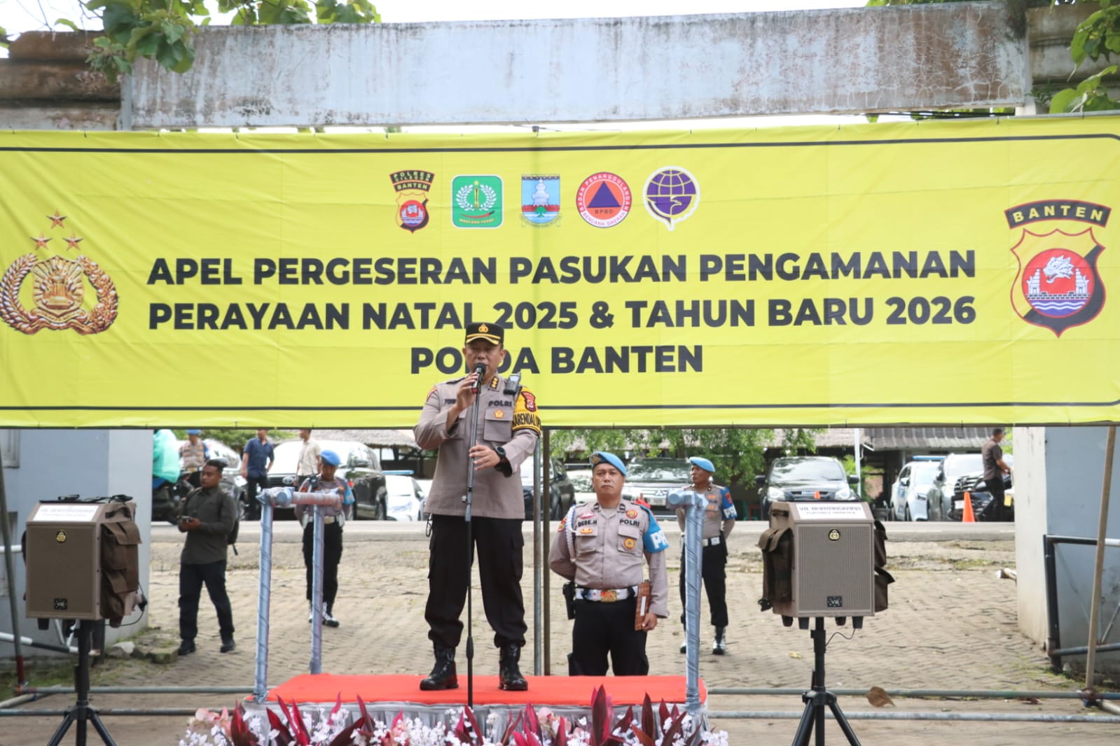 Apel dimulai sekitar pukul 07.40 WIB, dipimpin dan dihadiri langsung oleh Karoops Polda Banten Kombes Pol Yofie Girianto Putro, S.I.K., M.H., bersama Dir Lantas Polda Banten Kombes Pol Dr. Leganek Mawardi, S.H., S.I.K., M.S., Dirbinmas Polda Banten Kombes Pol Imam Tarmudi, S.I.K., M.H., Dirpolair Polda Banten Kombes Pol Yunus Hadith Pranoto, S.I.K., M.Si., serta sejumlah pejabat utama Polda Banten lainnya.