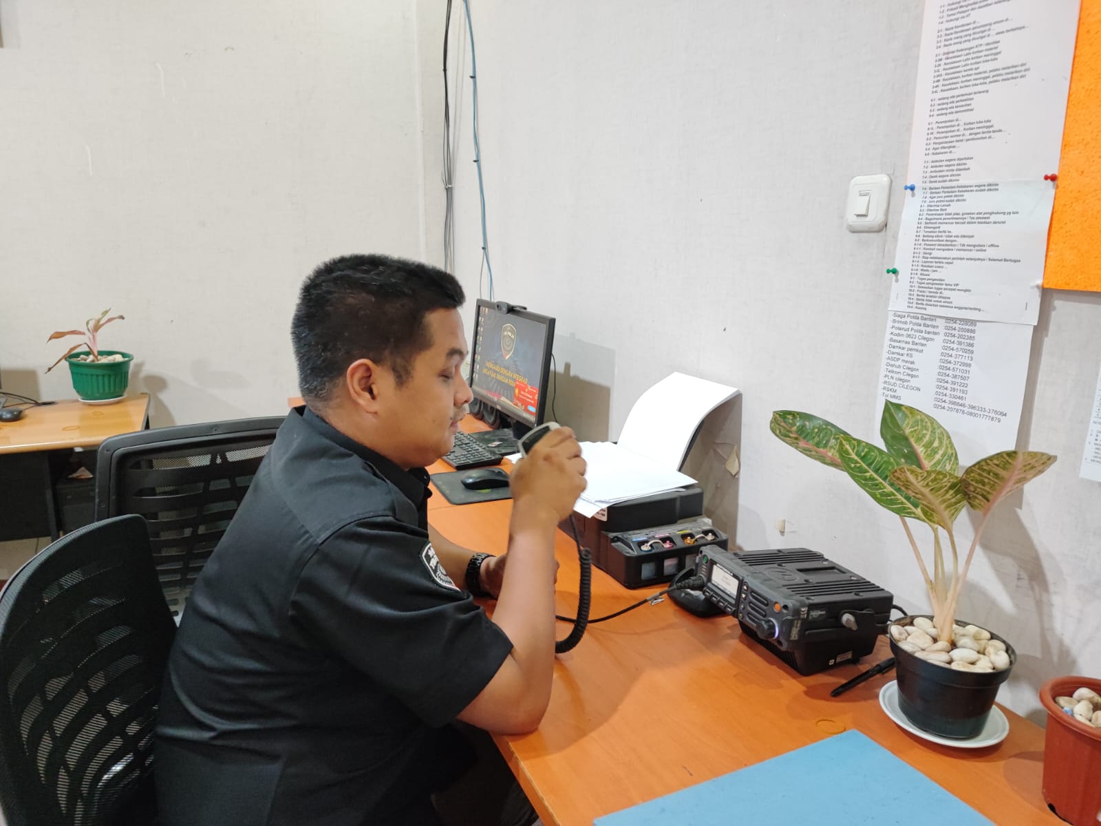Anggota Tik Polres Cilegon Menyiapkan Sarana dan Prasarana Alkom Dalam pelaksanaan tugas tersebut anggota TIK Polres Cilegon yang bertanggung jawab untuk menyiapkan peralatan sarana alkom berupa handy talky. Selain itu agar di tidak ada gangguan pada jaringan, sebelum pelaksanaan anggota TIK melakukan pemeriksaan terhadap sarana dan prasarana tersebut . Satu jam sebelum sarana alkom digunakan. Kapolres Cilegon AKBP. DR. MARTUA RAJA TARIPAR LAUT SILITONGA. melalui Kasi TIK AIPRU Suwanto, S.H. menyampaikan bahwa “untuk menunjang kelancaran penyampaian informasi anggota TIk Polres Cilegon selalu memeriksa sarana dan prasarana tersebut, sebelum maupun pada saat pelaksanaan akan selalu di monitor”