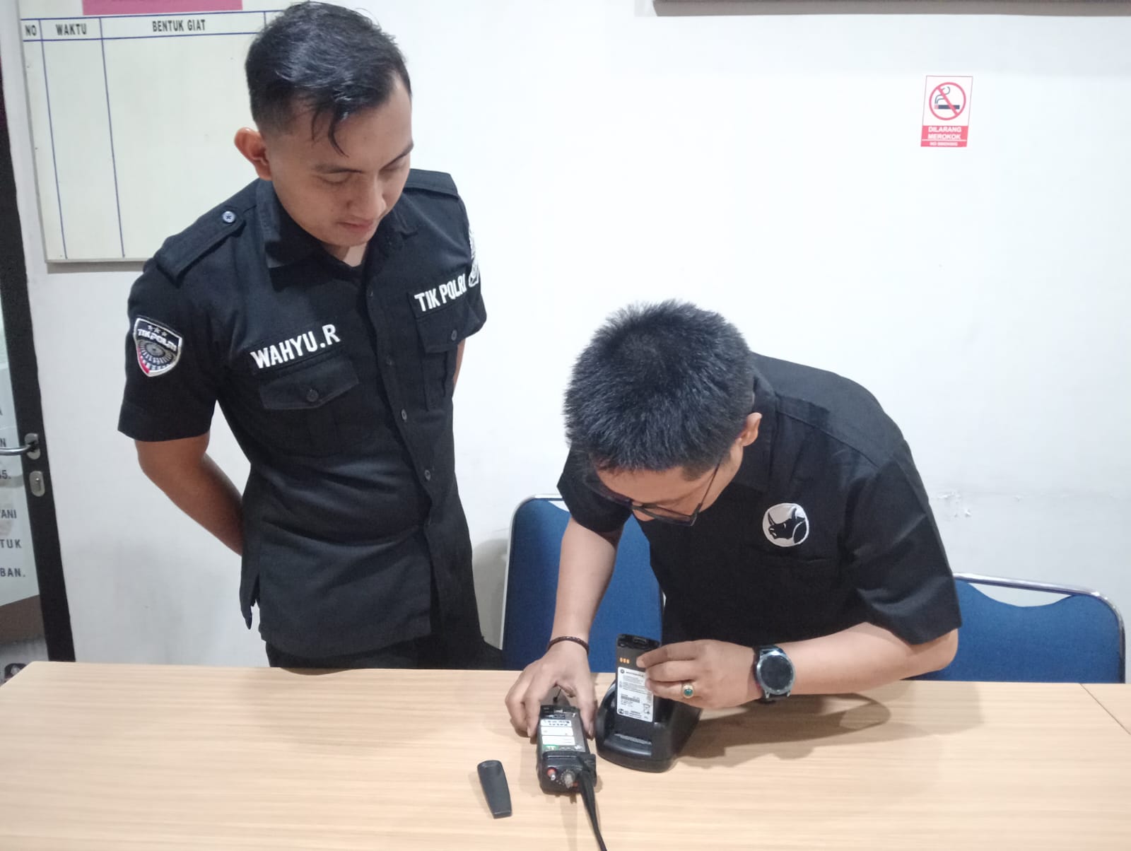 Anggota Tik Polres Cilegon Menyiapkan Sarana dan Prasarana Alkom Dalam pelaksanaan tugas tersebut anggota TIK Polres Cilegon yang bertanggung jawab untuk menyiapkan peralatan sarana alkom berupa handy talky. Selain itu agar di tidak ada gangguan pada jaringan, sebelum pelaksanaan anggota TIK melakukan pemeriksaan terhadap sarana dan prasarana tersebut . Satu jam sebelum sarana alkom digunakan. Kapolres Cilegon AKBP. DR. MARTUA RAJA TARIPAR LAUT SILITONGA. melalui Kasi TIK AIPRU Suwanto, S.H. menyampaikan bahwa “untuk menunjang kelancaran penyampaian informasi anggota TIk Polres Cilegon selalu memeriksa sarana dan prasarana tersebut, sebelum maupun pada saat pelaksanaan akan selalu di monitor”