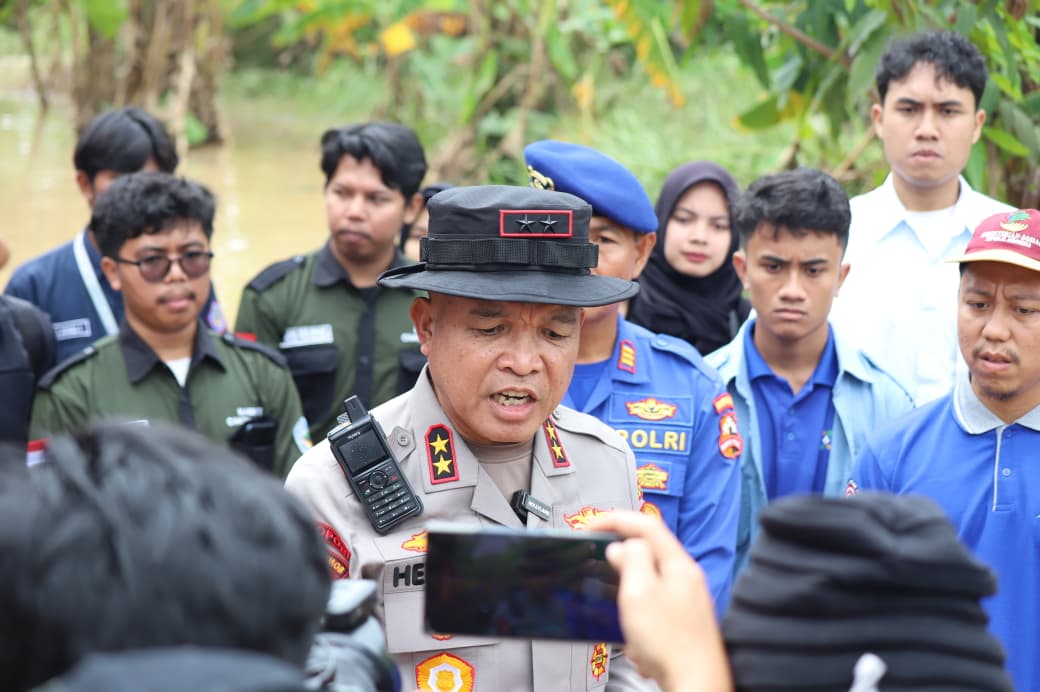 Usai meninjau dapur umum, Kapolda Banten melanjutkan pengecekan ke lokasi banjir di Lingkungan Sambirata RT 005/003, Kelurahan Cibeber, Kecamatan Cibeber. Di lokasi tersebut, Kapolda melihat langsung kondisi pemukiman warga yang terdampak banjir sekaligus menyerahkan bantuan makanan kepada masyarakat sebagai bentuk empati dan dukungan moril.
