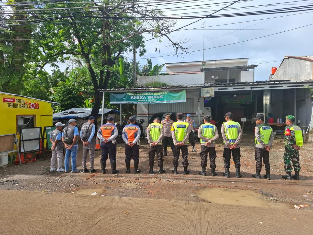 *POLRES CILEGON* Polda Banten. Menjaga kegiatan dan memastikan Aman Polsek Cinangka Polres Cilegon terjunkan Petugas menjaga pengamanan kegiatan PAM Natal dan tahun baru di Pospam Cinangka Kecamatan Cinangka. Senin (05/01/2026).