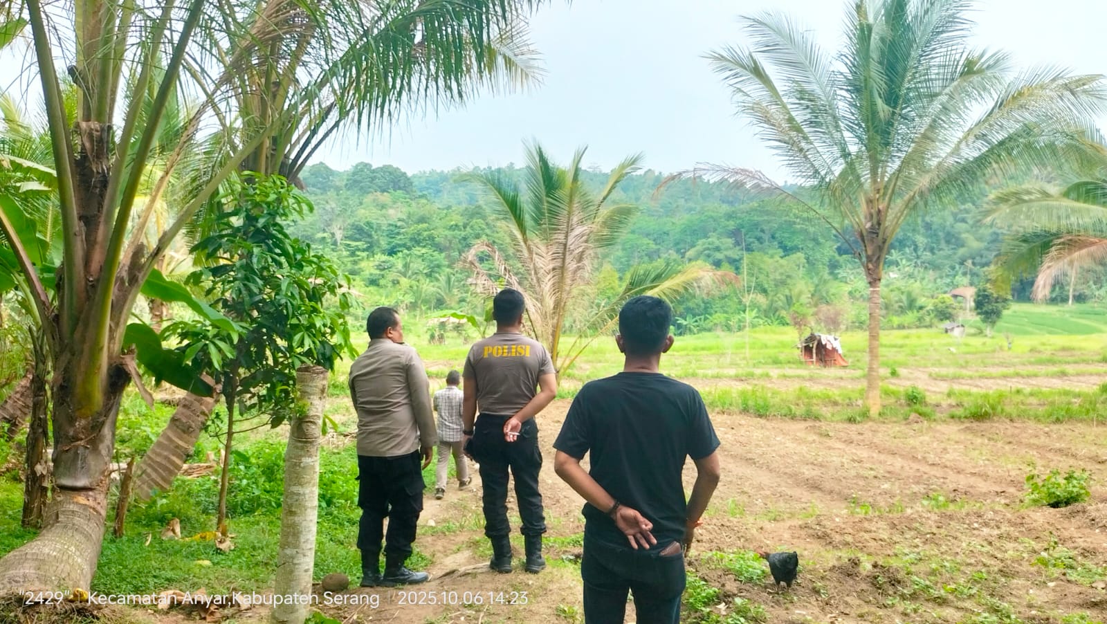 Kapolsek dan Bhabinkamtibmas Polsek Mancak Polres Cilegon Sambang Pengecekan kesiapan lahan tanam Jagung Di Desa Sangiang Kec.Mancak.