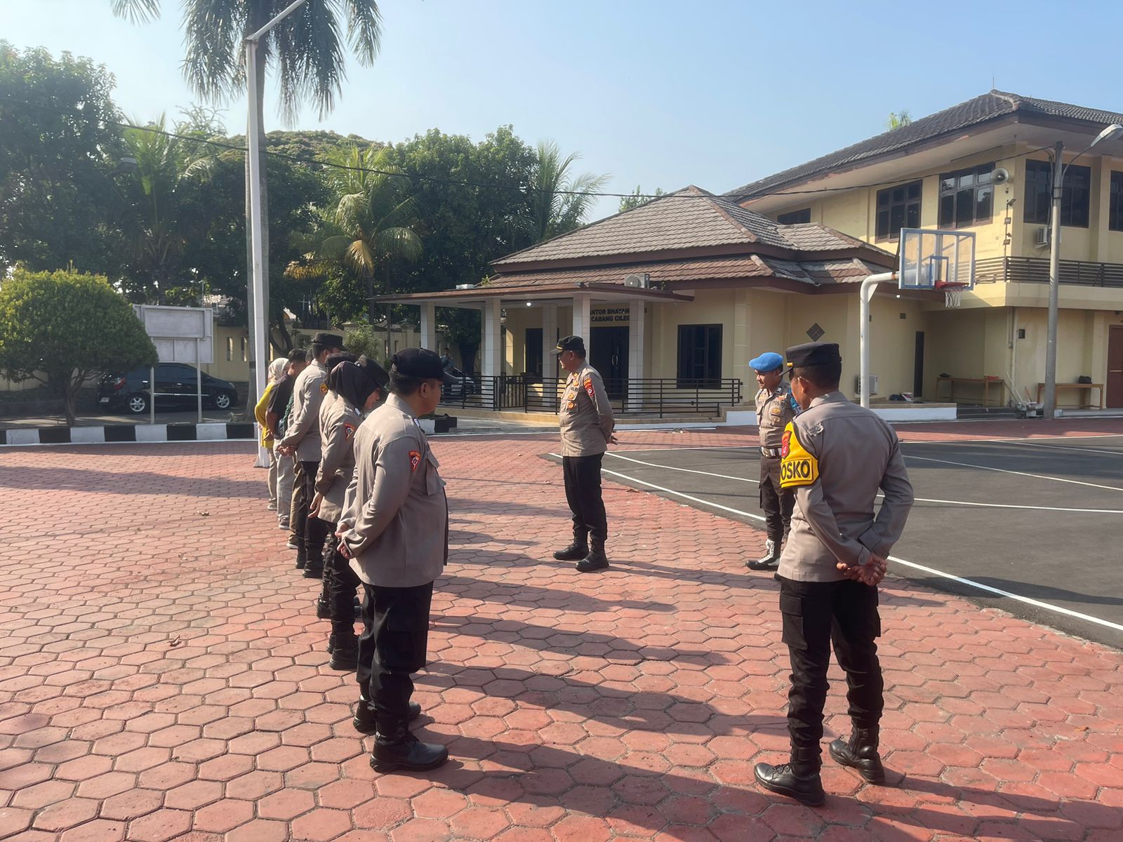 Anggota sium Polres Cilegon , tapil dalam Pellaksanaan rangka, kegiatan Apel ton Kerangka. Cilegon - Polres Cilegon Polda Banten - sium Polres Cilegon melaksanakan Apel Kerangka di Lapangan Apel Satya Haprabu Polres Cilegon Guna menunjukan kesiap siagaan pelayanan kepada masyarakat, sabtu (11/1/2026) Pukul 08.00 Wib. Kabag SDM Polres Cilegon selalu mengingatkan “Apel kerangka Penting untuk di laksanakan sebagai bentuk ke siap siagaan kita untuk hadir di tengah tengah masyarakat untuk melayani masyarakat sebagai mana tugas pokok Anggota Polri agar tericiptanya Harkamtibnas khususnya di Wilayah Kota Cilegon."Ujarnya Kegiatan ini sudah termasuk rutinatas personel Polres Cilegon menyadari kerawanan kejadian di akhir pekan kami selalu memberikan himbauan ke pada masyarakat untuk selalu hati hati dan waspada dalam menjalankan aktivitas di akhir pekan. Selain dari pada itu anggota yang terlibat apel tersebut melakukan pengaman di tempat ibadah guna kelancara dan ke amanan acara ibadah tersebut."Tutupnya (BL)