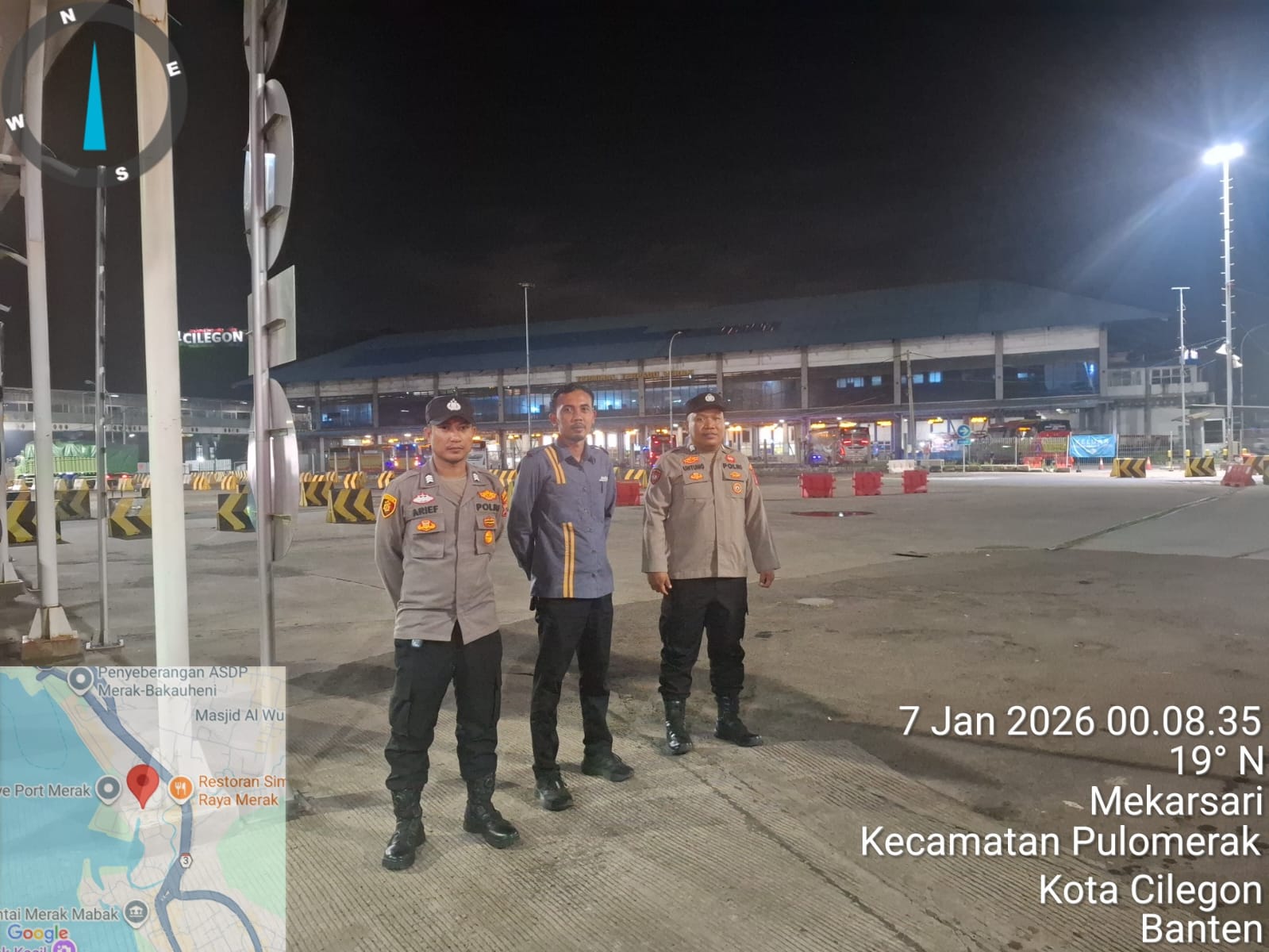 Cilegon - Personil Polsek Kskp Merak Polres Cilegon melaksanakan patroli di kawasan pelabuhan merak memberikan rasa aman dan damai, Rabu (07/01/2026)