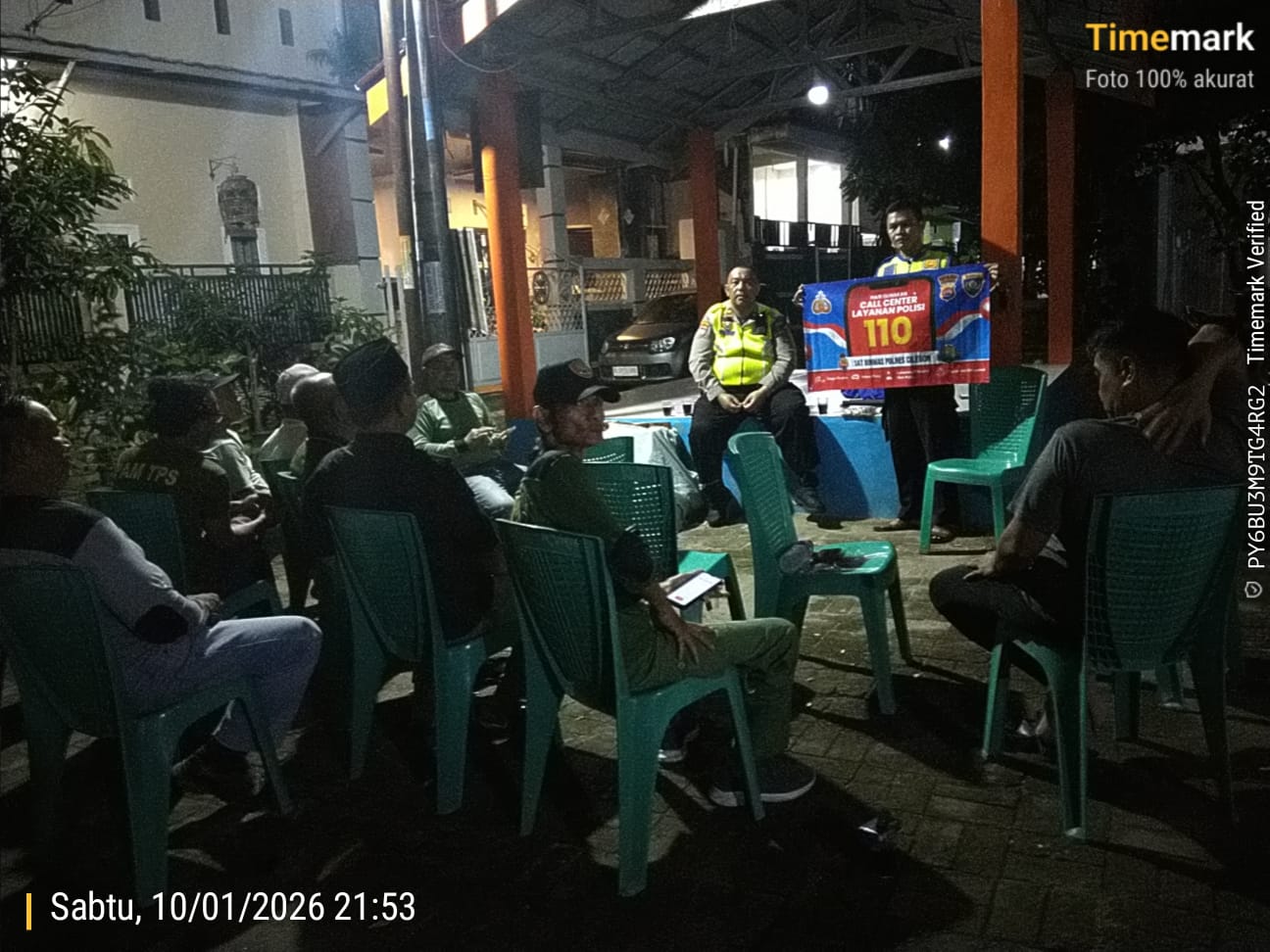Cilegon - Kasat Binmas Polsek Ciwandan Polres Cilegon Polda Banten IPTU Muhyidin bersama Personil Bhabinkamtibmas Polsek Ciwandan Polres Cilegon Polda Banten BRIPKA Heri Siswantoko melakukan kontrol Pos Ronda dan Berikan himbauan kepada pihak terkait dan warga, agar kegiatan Siskamling ditingkatkan lagi, Minggu (11/01/2026).