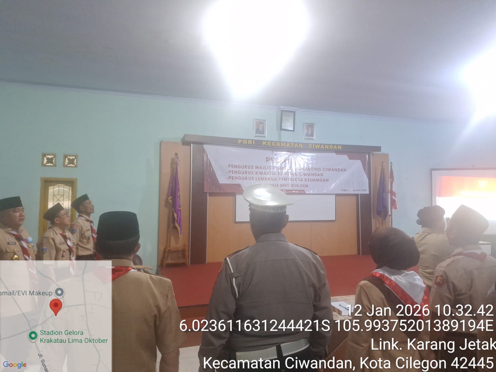 Cilegon - Polres Cilegon melalui Polsek Ciwandan menghadiri pelantikan pengurus Majlis Pembimbing Ranting Ciwandan, Pengurus Kwartir Ranting Ciwandan, dan Pengurus Lembaga Keuangan Masa Bakti 2025-2026 di Gedung PGRI Kecamatan Ciwandan. Senin (12/01/2026).