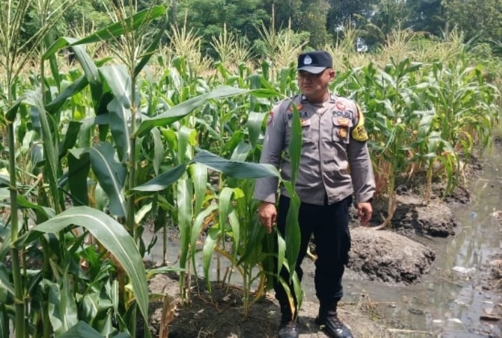 sinergi polri dan petani,bhabinkamtibmas cek tanaman jagung di wilayah purwakarta
