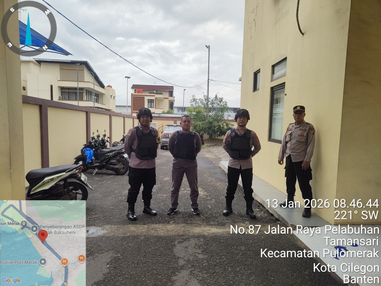 Cilegon - Personel piket jaga Polsek Kskp Merak Polres Cilgon Polda Banten melaksanakan siaga 1 Polsek pelaksanaan Sispam Mako oleh piket siaga dipimpin oleh Kspk Polsek Kskpy Merak Polres Cilegon Polda Banten, Selasa (13/01/2026).