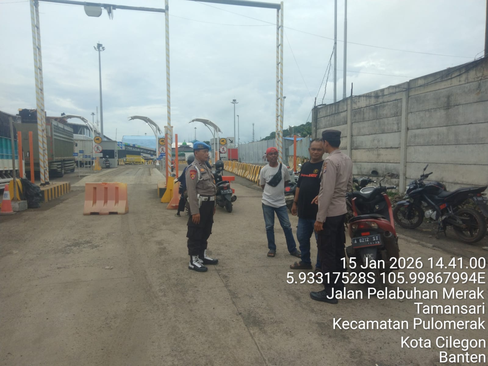 ]Cilegon - Personel Polsek Kskp Merak Polres Cilegon Polda Banten melaksanakan sambang dan patroli kawasan pelabuhan merak dalam rangka menjaga Harkamtibmas di Kawasan Pelabuhan Merak, Kamis (15/01/2026).