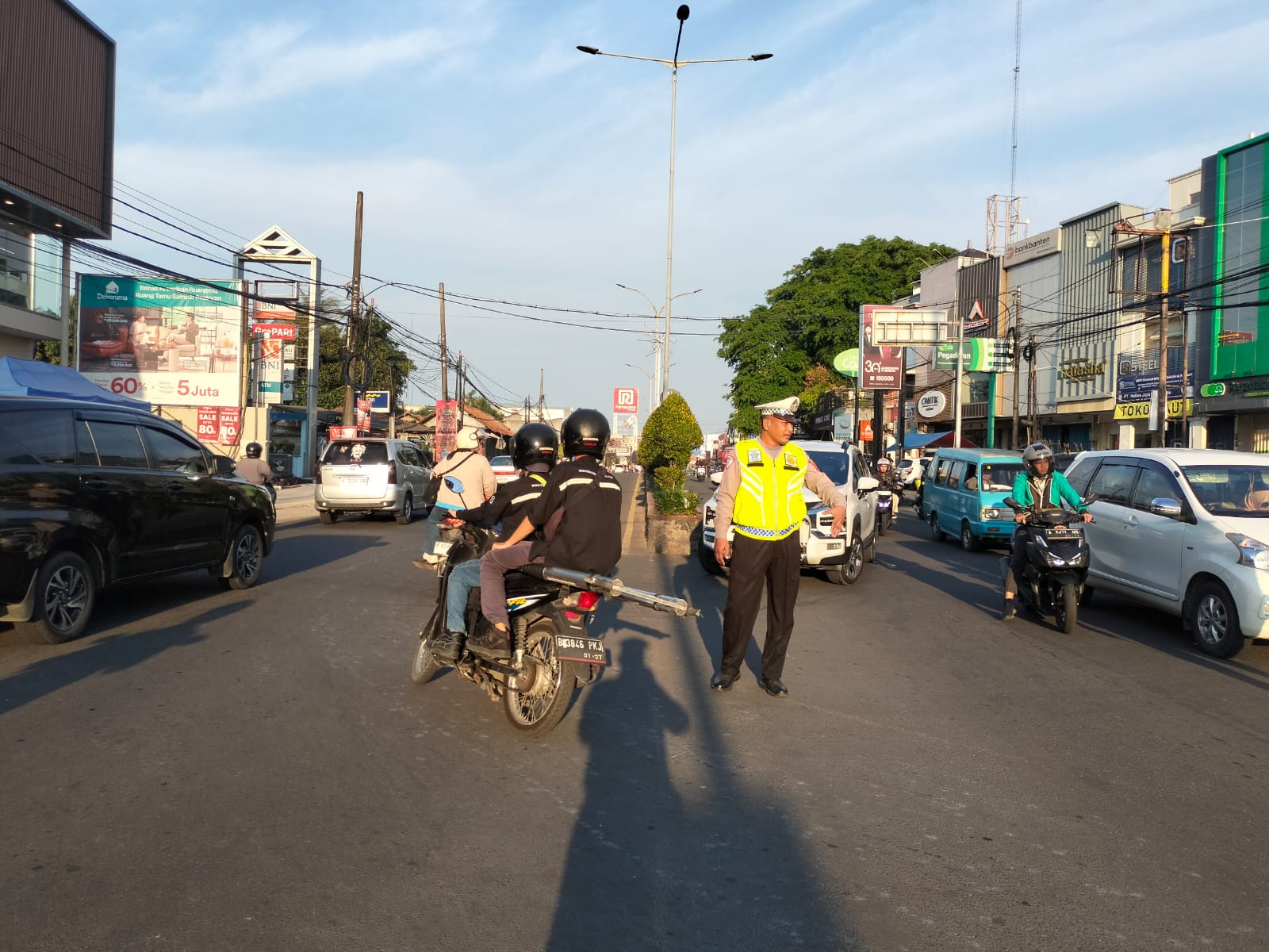 Gatur arus Lalin Polsek Cilegon lancarkan arus kendaraan.