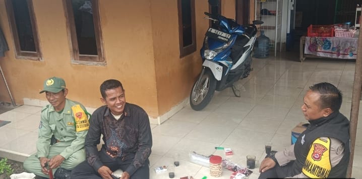 Bhabinkamtibmas Polsek Purwakarta Polres Cilegon Polda Banten, Aipda Anton Sudrajat, melakukan patroli dialogis sekaligus menjalin silaturahmi dengan anggota Laskar Masyarakat (Linmas) yang sedang menjaga keamanan hajatan warga di Lingkungan Pecinan, Kelu