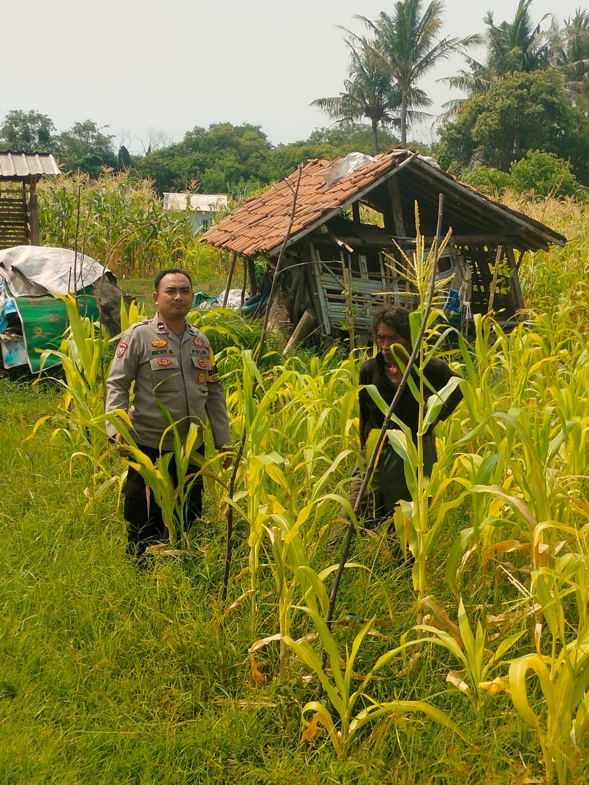 Pantau lahan jagung pok tani sinarjaya kecamatan.puloampel Desa banyuwangioleh Bhabinkamtibmas Polsek Puloampel