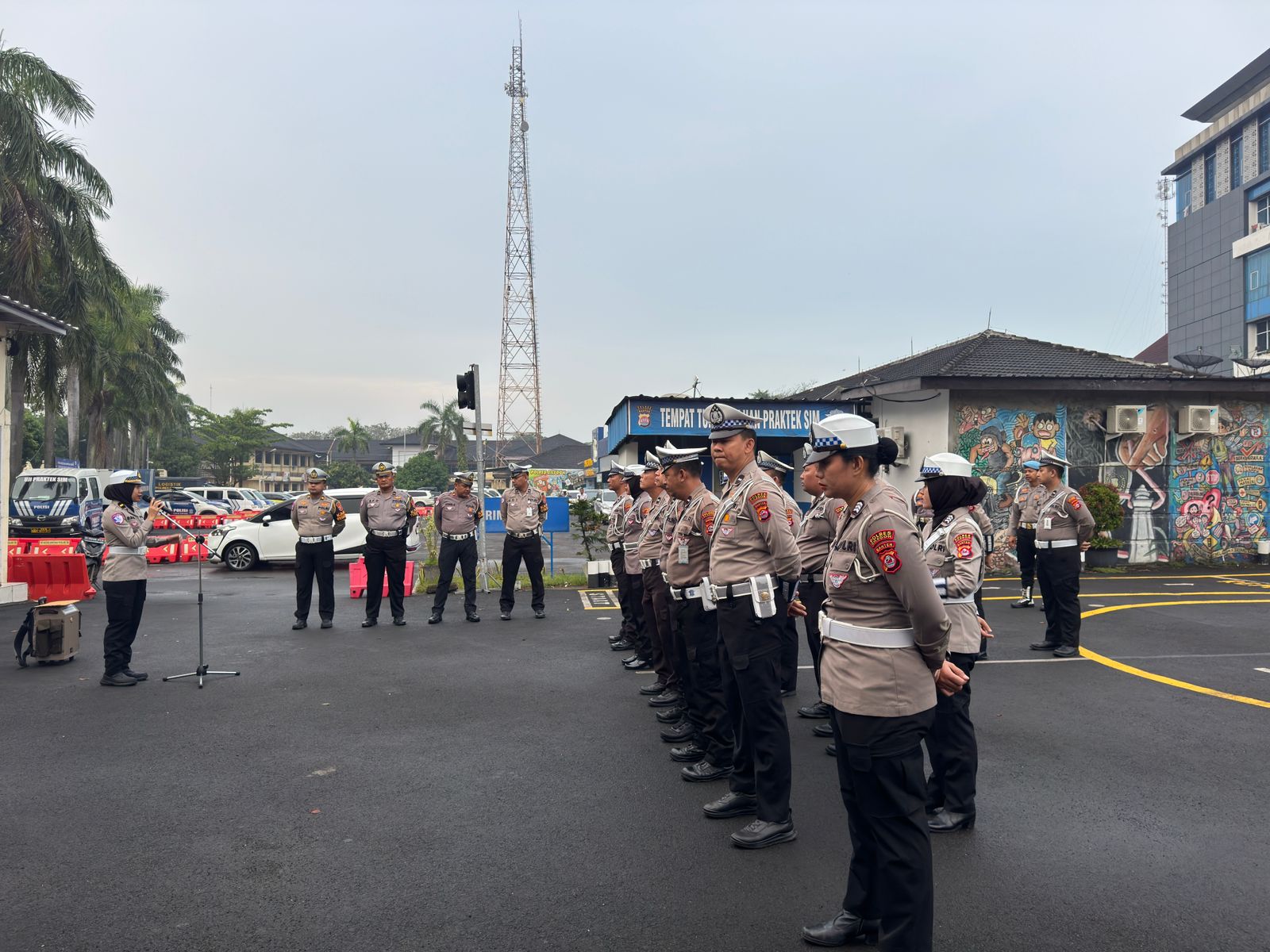 Cilegon, Satlantas Polres Cilegon Polda Banten – Kaurmintu Satlantas Polres Cilegon IPDA Dwi Chairani pimpin pelaksanaan apel Pagi yang dilakukan oleh personel Satlantas Polres Cilegon pada Pagi hari ini yang bertempat di Lapangan praktik SIM Satlantas Polres Cilegon, Senin (19/1/2026) Pagi pukul 06.00 Wib.
