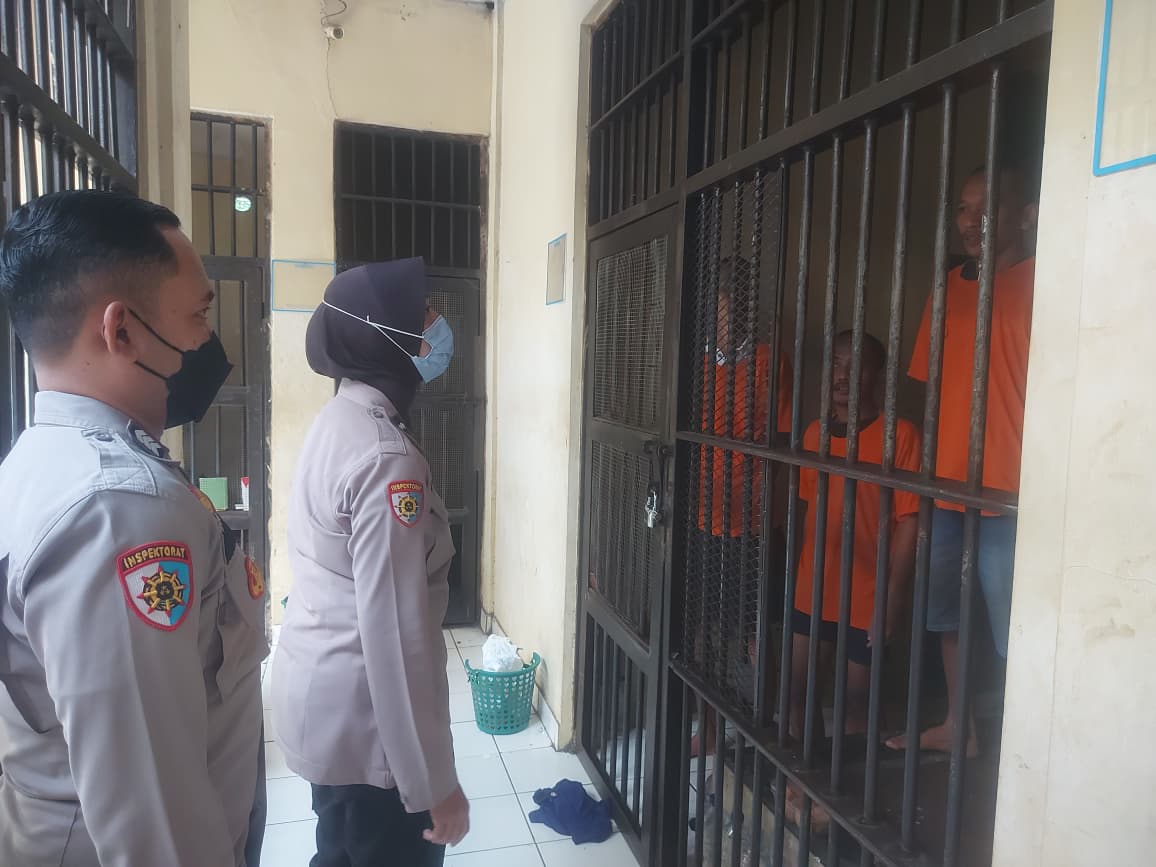 Pelaksanaan pengecekan ruangan tahanan Polres bersama piket Jaga tahanan mengecek secara keseluruhan kondisi ruang tahanan. Dalam pengecekan langsung kepada penghuni tahanan, menanyakan tentang kondisi dan keadaan para tahanan.
