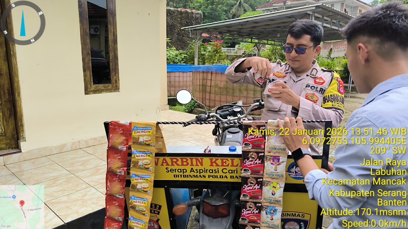 Sebagai Pengemban Fungsi Harkamtibmas, Bhabinkamtibmas melaksanakan Kegiatan Sambang Kamtibmas Implementasi Program Commander Wish Kapolda Banten "WARBINLING" Warung Bhabinkamtibmas Keliling dan Implementasi Program Commander Wish Kapolres Cilegon "TRENDING" dalam rangka menciptakan situasi aman dan kondusif Di Daerah, KAMIS, (22/01/2026).