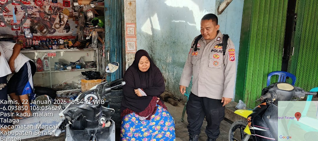 Kapolres Cilegon Polda Banten AKBP Dr. Martua Raja Taripar Laut Silitonga melalui Kapolsek Mancak  AKP ANDI AAS  MARIO Dan  Anggota Bhabinkamtibmas  BRIPKA ARIE SUFRIYADI, BRIGADIR ASEP WINDU SAPUTRA melaksanakan kegiatan sambang serta implementasi Commander Wish Kapolda Banten "WARBINLING" Warung Bhabinkamtibmas Keliling dan Program Commanderwish Kapolres Cilegon "TRENDING" dalam rangka menciptakan situasi aman dan kondusif di daerah hukum Polsek Mancak Polres Cilegon.
