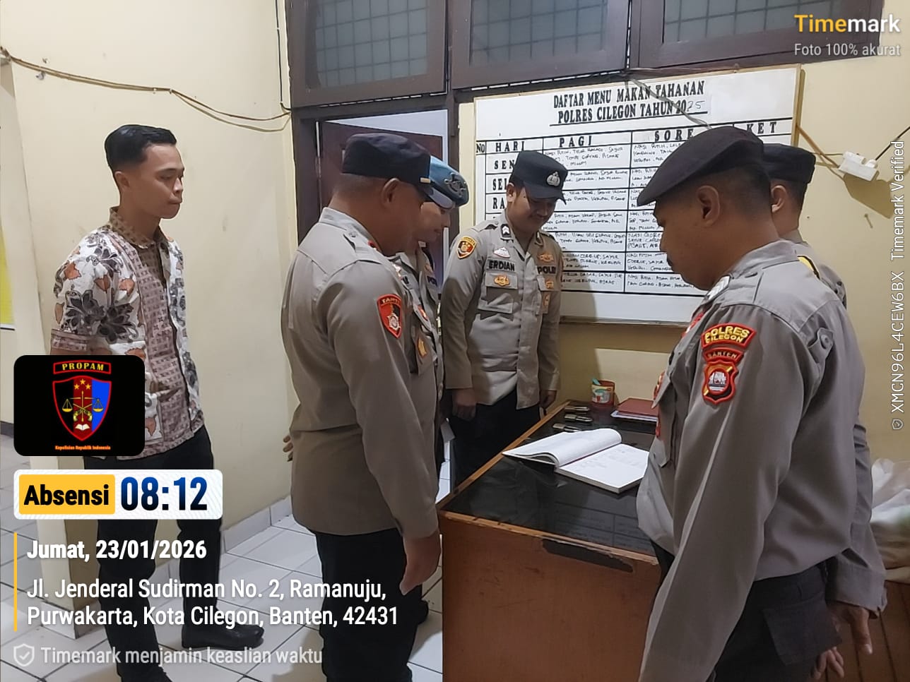 Cilegon,Personel piket Satreskrim Polres Cilegon Polda Banten beserta piket fungsi lainya melakukan pengecekan jumlah narapidana dan ruang di setiap kamar rutan di polres cilegon. Kegiatan ini bertujuan agar terus memonitor keadaan para narapidana di rutan polres cilegon dan menghindari hal-hal yang tidak diinginkan serta mengecek kekuatan setiap ruangan. Jumat  (23/01/2026).