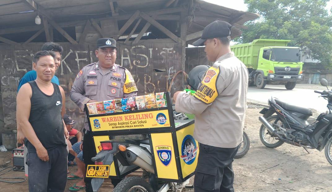 Dialogis dengan Warga yang lagi nongkrong di Warung Bhabinkamtibmas tersebut menyampaikan pesan atau himbauan kamtibmas dalam rangka meningkatkan kewaspadaan guna antisipasi aksi kejahatan serta kesadaran masyarakat melalui partisipasi positif terhadap kamtibmas dan hukum di lingkungan sekitar, bhabinkamtibmas Polsek Bojonegara Aipda Susilo Dan Bripka Tri Handoko Bhabinkamtibmas juga menghimbau agar menjauhi minuman keras dan juga narkoba Balapan Liar dan Judi Online,Tawuran yang kini kian marak beredar. Petugas juga menghimbau untuk menjaga hubungan baik dengan sesama dan juga kelompok untuk menghindari konflik.