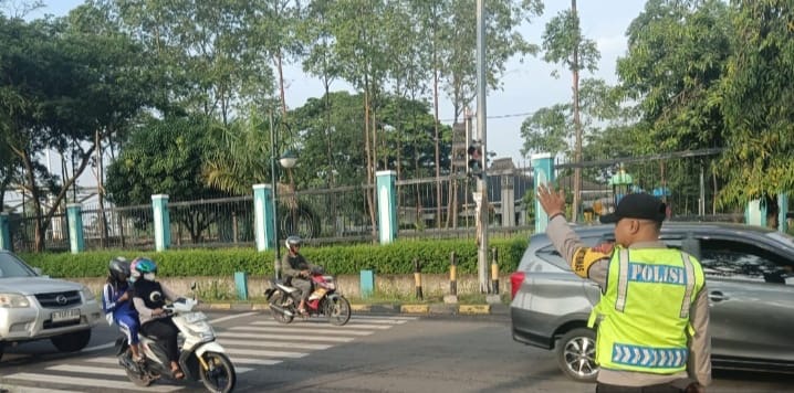 Dalam kondisi pagi hari yang biasanya mengalami kepadatan kendaraan, petugas kepolisian yang terpasang di lokasi bekerja secara terkoordinasi untuk mengarahkan arus lalu lintas, mencegah kemacetan, serta memastikan keamanan setiap pengguna jalan. Langkah ini menjadi bagian dari upaya rutin kepolisian dalam menjaga kelancaran lalu lintas dan keselamatan masyarakat.