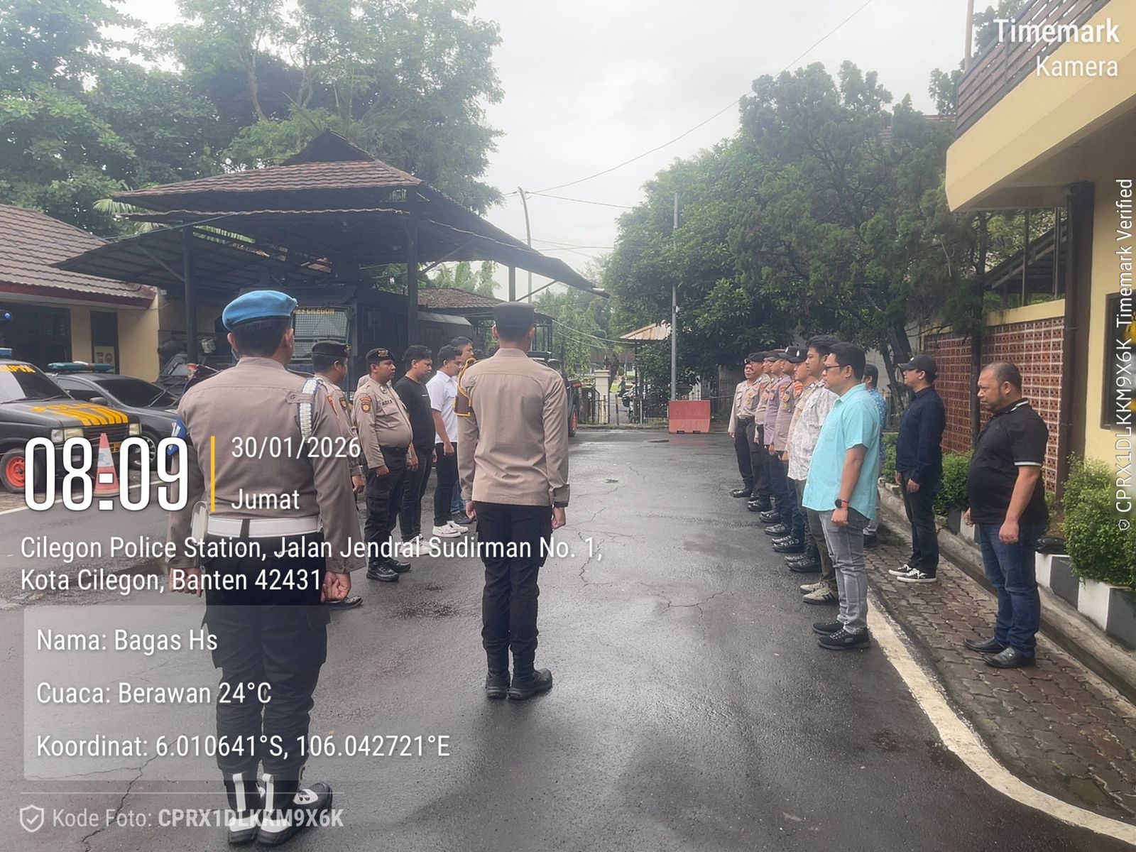 Kapolres Cilegon Polda Banten AKBP Dr.Martua Raja Taripar Laut Silitonga melalui Kasatreskrim Polres Cilegon AKP Yoga Tama mengatakan, “kegiatan personel satreskrim polres cilegon melakukan piket di penjagaan pintu masuk Mako Polres Cilegon mengantisipasi adanya kejahatan yang menggangu kenyamanan dan keamanan mako Polres Cilegon dalam melakukan pelayanan kepada masyarakat kota Cilegon".