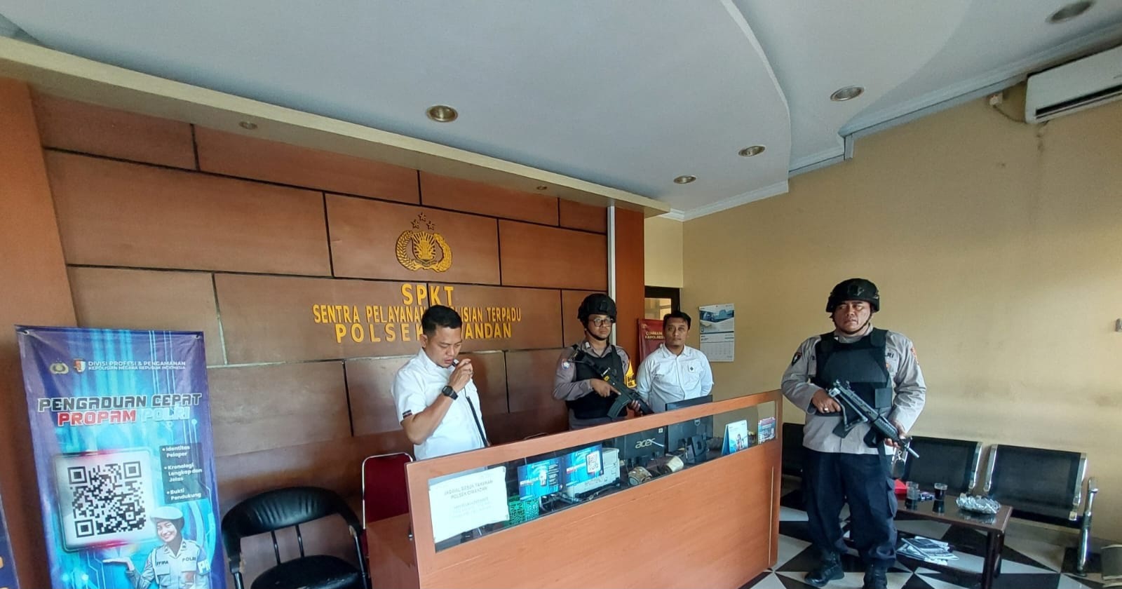 Dalam pelaksanaan Sispam Mako harus sesuai dengan SOP keamanan, antara lain harus menggunakan rompi anti peluru dan helm keselamatan (full body system), dilengkapi dengan senjata laras panjang sebagai antisipasi tindakan tegas terukur, dilanjutkan pemeriksaan ke setiap sudut ruangan kantor serta pengecekan barang inventaris dinas, termasuk memantau melalui CCTV guna memastikan bahwa situasi kantor Polsek Ciwandan dan sekitarnya dalam keadaan aman dan terkendali, Ungkapnya.