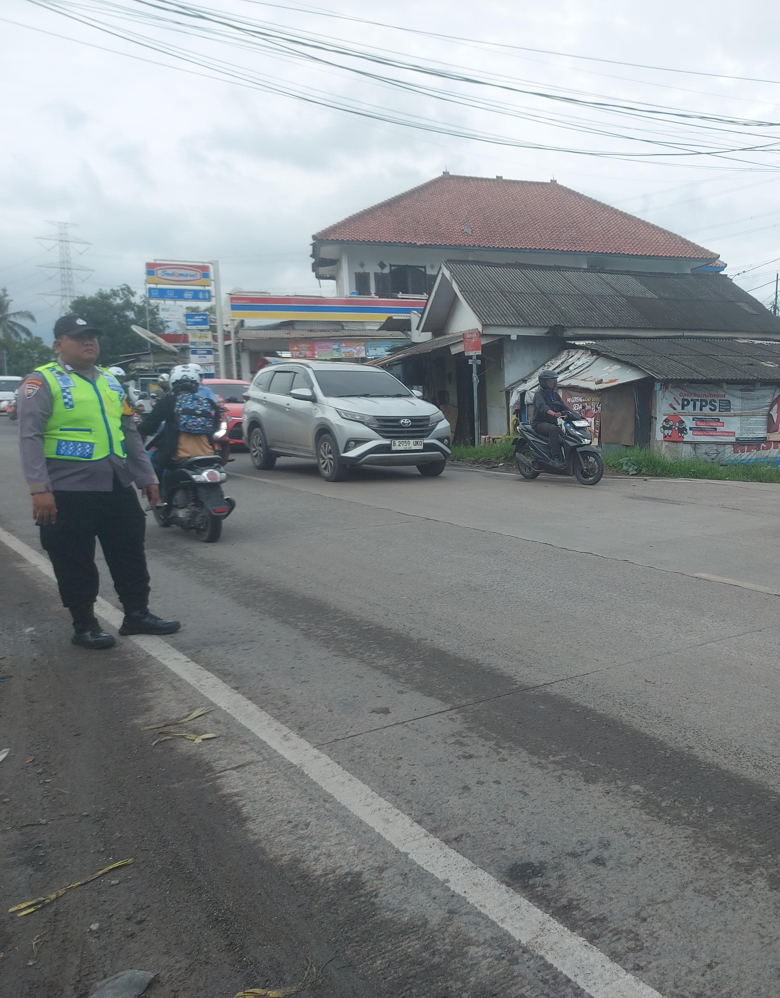 Laksanakan Strong Poin Di Pagi Hari Di Jalan Raya Wadas Bojonegara, Bripka Tri Handoko dan Bripka Heru Bhabinkamtibmas Demi Kelancaran dan Kenyamanan Pengguna Jalan