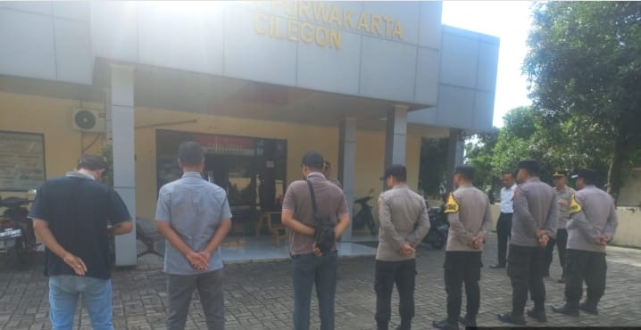 Personel Polsek Purwakarta Polres Cilegon melaksanakan apel pagi rutin yang dipimpin oleh Kanit Samapta IPTU Asep.E di halaman depan Markas Komando (Mako) Polsek Purwakarta