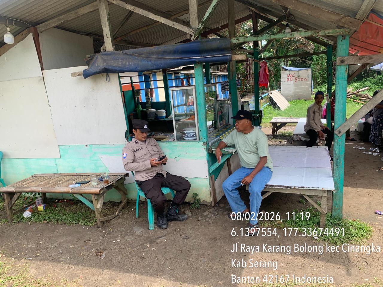_*POLRES CILEGON*_ | Polsek Cinangka Polres Cilegon Polda Banten melaksanakan kegiatan patroli Serta memberikan Himbauan kepada pengunjung pantai yang berwisata dan Sambang kepada petugas penjaga pantai dan juga antisipasi harkamtibmas di Wilayah Hukum Polsek Cinangka Polres Cilegon Polda Banten, Minggu (08/02/2026).